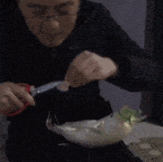 搞笑GIF趣图:大哥,屠龙宝刀重现江湖,你却拿来切豆腐皮用