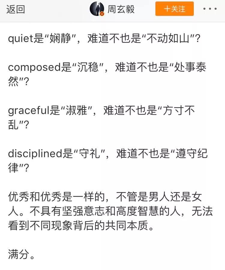 有网友称赞预告片中的文案。其中描述好妻子的品质“quiet, composed, graceful, disciplined”,虽然官方中文翻译做“娴静、沉着、淑雅、守礼”,但这段描述配上木兰从军习武的画面,同样也可以理解为一个战士所需具备的品质。