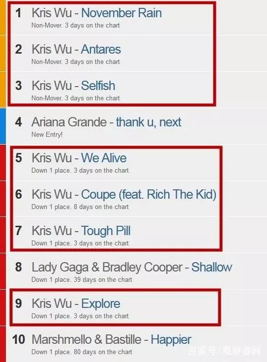 新专辑中的7首歌都名列榜单前十,其中三首歌占领前三名,超过了A妹新歌《Thank U, Next》,这样的榜单情况也在国内外粉丝圈中引发热议……