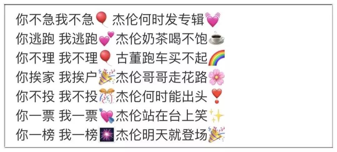 很快,自嘲为“中老年人”的“夕阳红粉丝团”的粉丝们也做得像模像样起来,微博上一片为周董加油助威的火爆景象↓↓↓