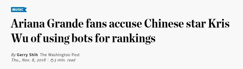 “A妹粉丝指责中国明星吴亦凡打榜使用机器人”
