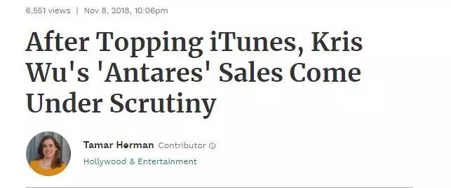 “在登顶iTunes榜单之后,吴亦凡的《Antares》销量正在接受审查。”