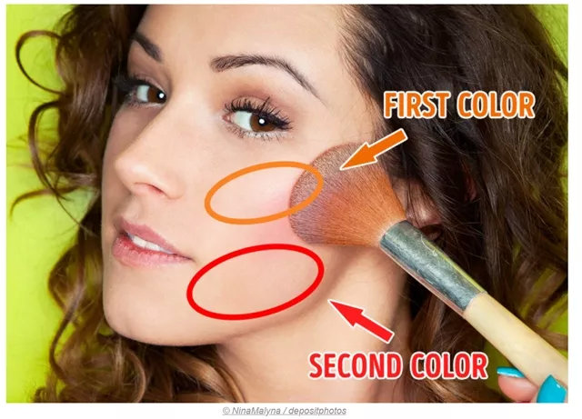 把修容和腮红晕染在一起是近期兴起的化妆趋势,方法也十分简单:先在颧骨上打一层颜色打底,再用化妆刷刷上另一层颜色。用这样的手法上妆,会令妆容看起来会十分精致有层次~