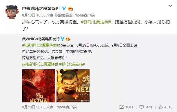 中国的暑期动画大片《哪吒之魔童降世》要去北美啦~