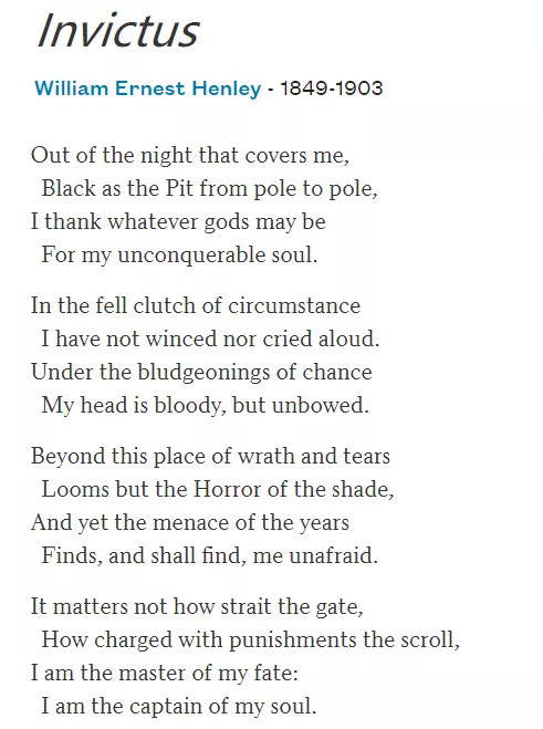 “我命由我不由天”这句算得上电影里被网友刷屏最多的一句金句啦~网友们给出的这个翻译出自《Invictus》,是英国诗人William Ernest Henley的名篇。