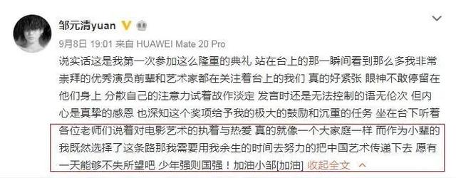 从她社交平台来看,除了这次为拿新人奖发表了获奖感言外,她已经有好几个月没有更新,而她获奖感悟写得也很好,她说这条路需要用自己余生的时间去努力,把中国艺术传递下去。