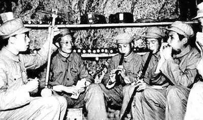 王莘在朝鲜战场和慰问团排练《歌唱祖国》