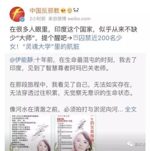 中国反邪教也转发了伊能静的微博,但印度大师要是看到会很不开心。